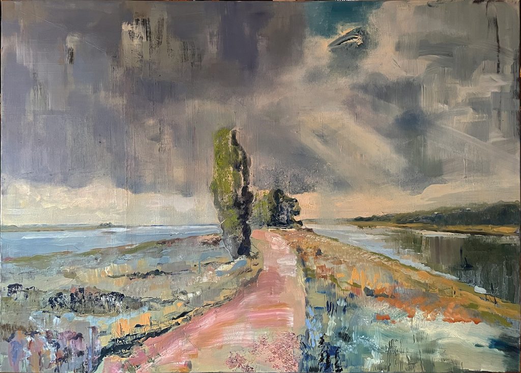 Nach Norden Öl auf Leinwand · 140 x 100 cm · 2020 Oberhalb Havelberg geht der Blick zwischen Elbe und Havel in Richtung Norden. 2.800 €